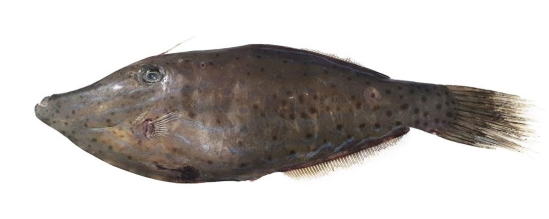 날개쥐치(학명: Aluterus scriptus)는 복어목 쥐치과에 속하는 어류입니다. 일반적으로 대서양과 태평양의 열대 및 아열대 해역에 주로 분포하지만, 최근에는 국내 동해 남부와 남해, 특히 제주도 연안에서 발견 사례가 증가하고 있습니다. 몸이 길고 납작하며, 녹갈색 또는 회색 바탕에 검은 점과 푸른색 선들이 흩어져 있는 화려한 외모를 가지고 있습니다. 우리가 알고 있는 쥐치보다 큰 크기입니다.