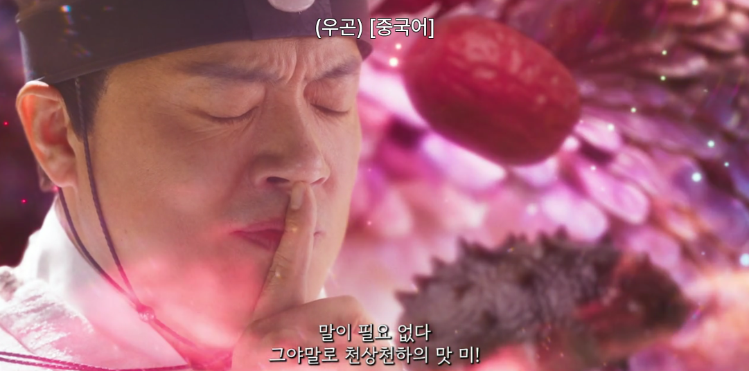 이번 9화에서는 명과 조선의 자존심을 건 요리 대결이 펼쳐졌는데요. 조선의 수라간 요리를 깎아내리던 우곤이 주인공이 만든 요리를 맛본 후, 표정이 급변하는 모습이 압권이었습니다. 미간을 잔뜩 찌푸리며 혀를 내두르다 이내 눈이 휘둥그레지며 감동하는 연기는 보는 내내 웃음을 자아냈죠.