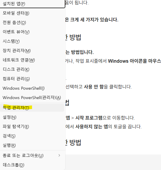 1. 작업 관리자를 이용한 윈도우 시작프로그램 설정 방법